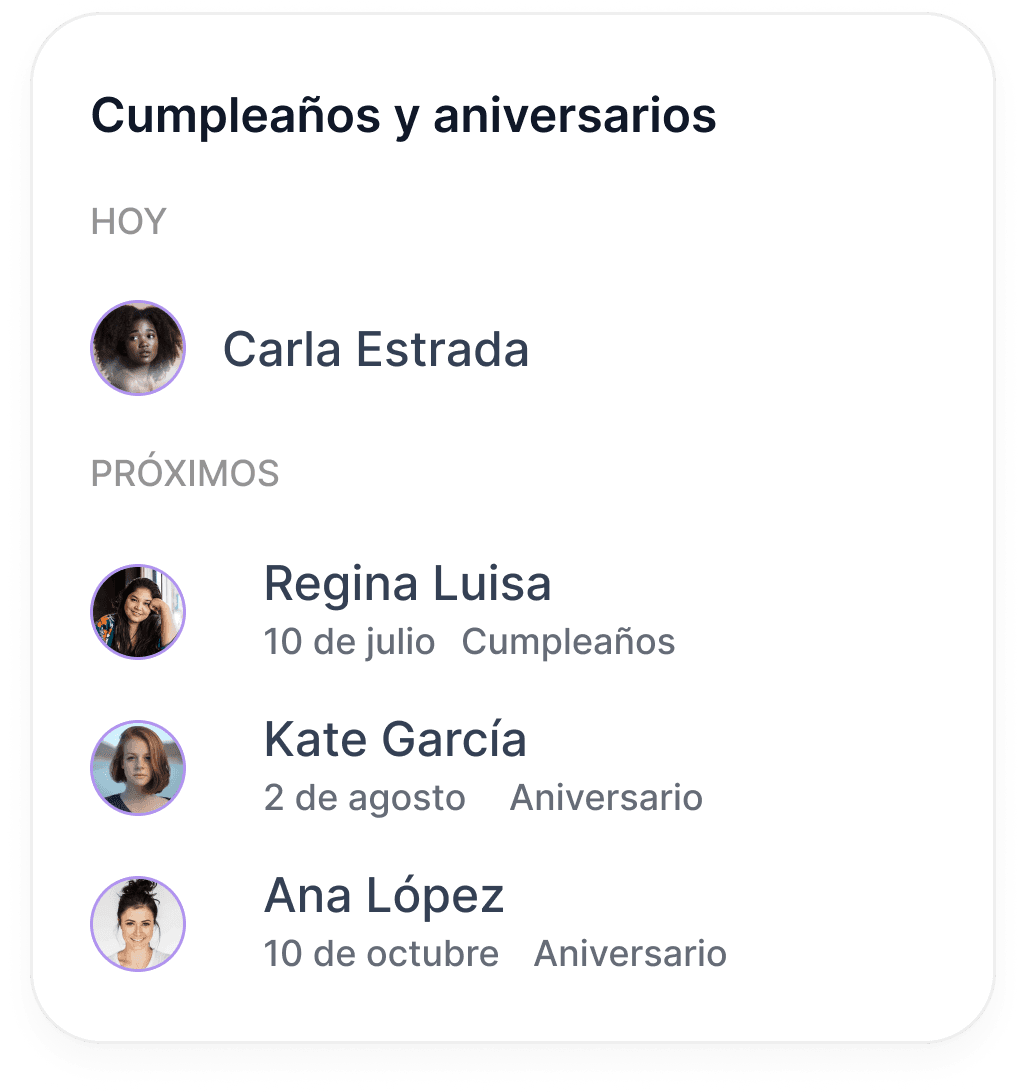 Automatiza los reconocimientos y beneficios para los cumpleaños y aniversarios de tus colaboradores. Sin errores ni tiempo perdido.