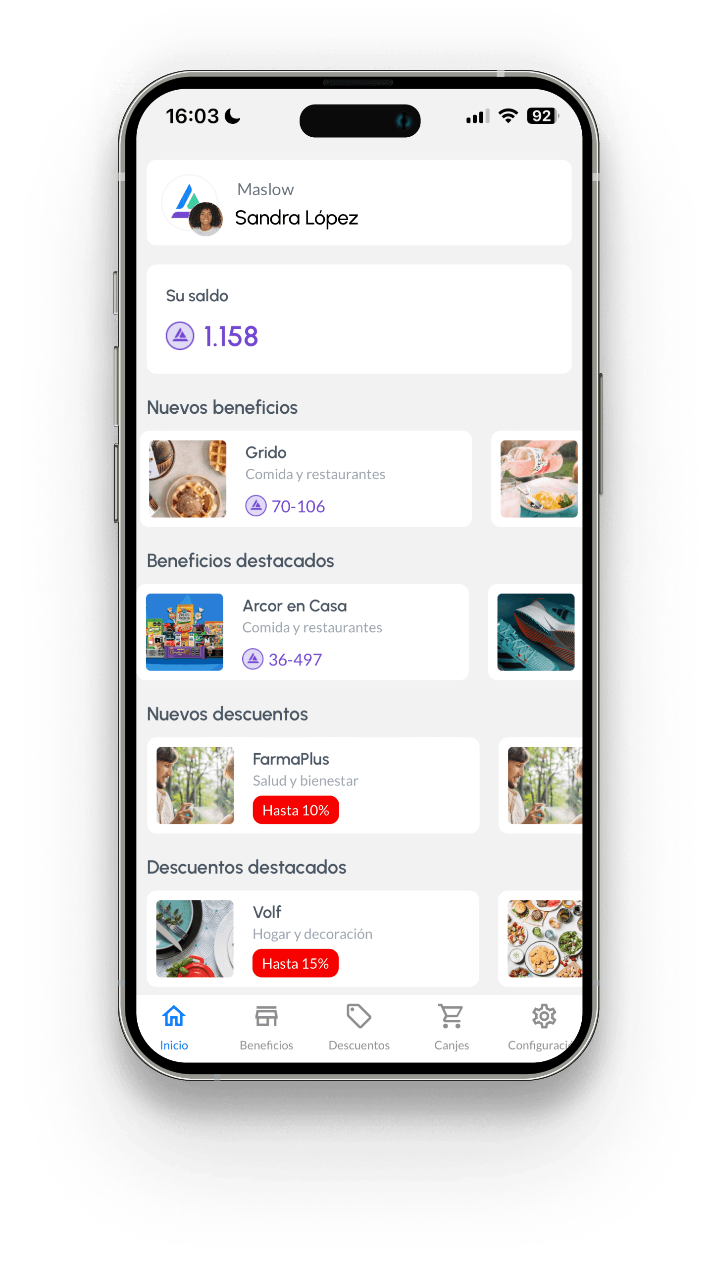 Maslow ofrece un club de descuentos amplio, geolocalizado y siempre actualizado, integrado a la experiencia diaria de tus equipos.
