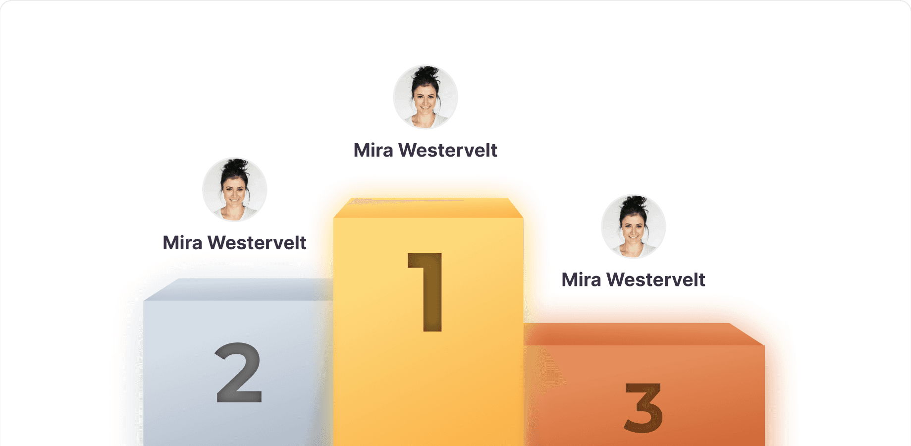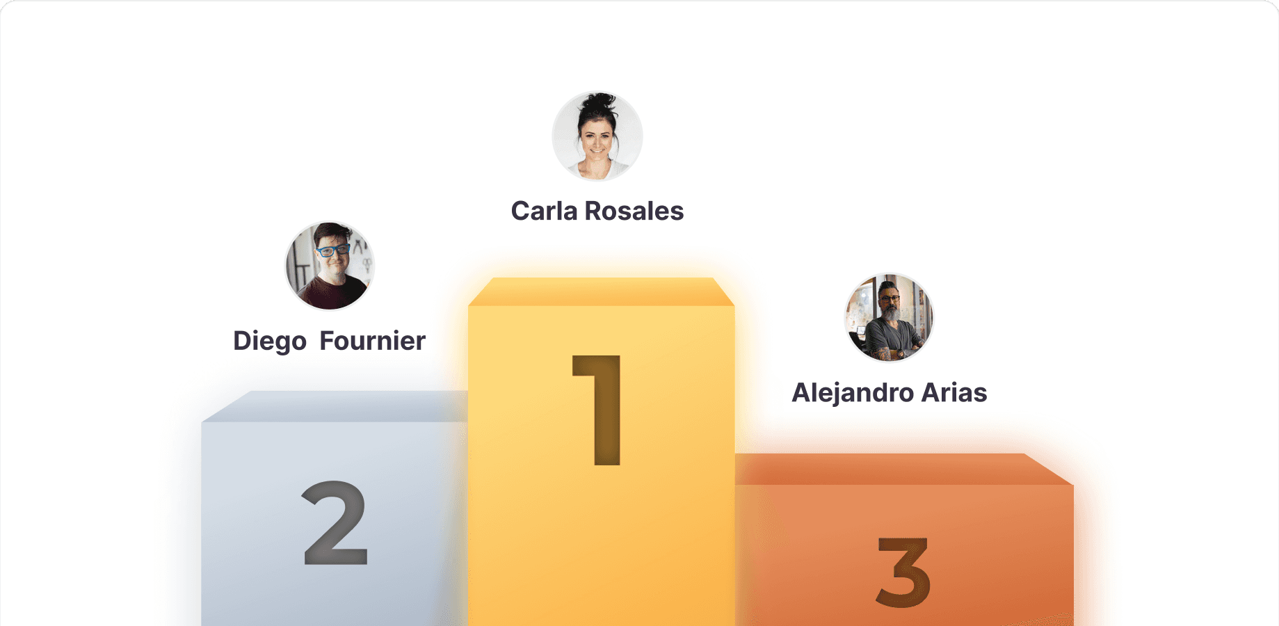 La plataforma genera automáticamente un ranking general y un podio final con los tres primeros puestos.